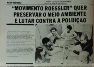 Sexta-feira passada, à noite, foi realizado em Novo Hamburgo o I Encontro sobre a Preservação do Meio Ambiente. Nesta Reunião de pessoas preocupadas com a destruição da natureza, foi criado oficialmente o Movimento Roessler para Defesa Ambiental, nascido em Novo Hamburgo, por iniciativa de um grupo de estudantes da Fundação Evangélica com apoio de um professor, um estudante universitário e alguns profissionais liberais. Além da criação oficial do movimento, houve uma palestra sobre o assunto, a cargo do arquiteto Udo Mohr.